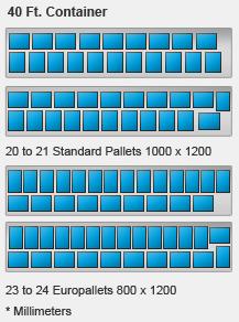 - 40 Feet: A 40' container can hold 23-24 "Europallets"